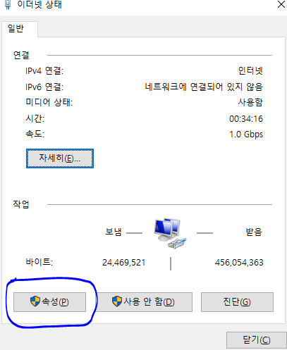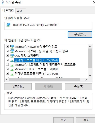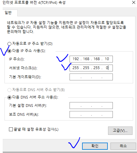 아이피 값 대역대를 동일하게, 끝자리는 공유기 아이피 주소와 겹치지 않게 지정해주고 확인.