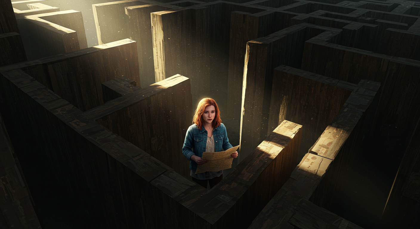 복잡한 미로 속에서 출구를 찾지 못하고 헤매는 꿈입니다.